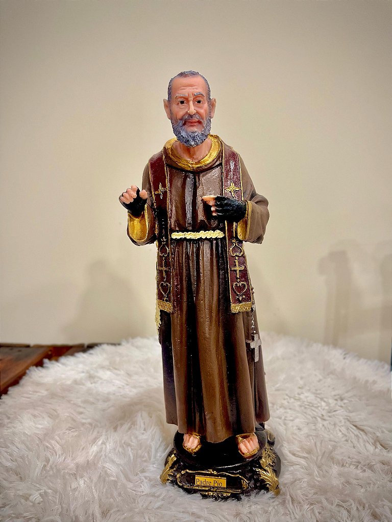 Com pintura artesanal e detalhes delicados, cada traço desta peça foi pensado para transmitir a serenidade e a força espiritual de Padre Pio. Sua expressão de oração nos lembra da importância de confiar plenamente em Deus.